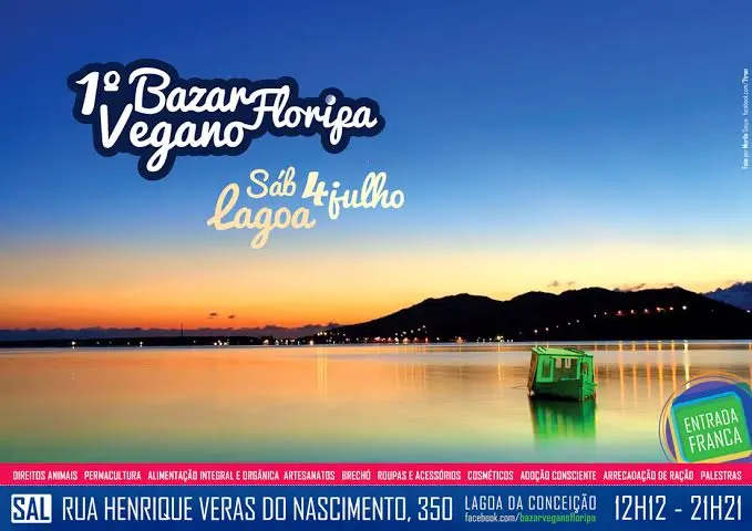 Sábado, dia 4 de julho de 2015 Florianópolis proporcionará um evento que tem como princípio a miscigenação dos movimentos sociais. Reconhecendo as interligações entre diversas causas. Estamos falando do primeiro evento em assumir algumas posturas éticas sobre a questão dos animais, onde além de ser um bazar sem componentes de origem animal e de itens não testados em animais, também não promove o uso de transgênicos, sal e açúcar refinados, glutamato monossódico, aspartame, gordura hidrogenada, frituras, excessos de farinhas brancas refinadas nas composições, refrigerantes, comercialização de produtos acompanhados de embalagens de isopor, entre outros itens que não agregam a causa. Esse reconhecimento que inicialmente pode causar espanto a algumas urbanas comodidades diárias, acabou atraindo respeito por “outros segmentos” sociais que agora estão passando a respeitar e querer entender mais a questão de direitos animais. É um evento cooperativo entre pequenos produtores da região, cozinheiro(a)s, artesã(o)s, permacultora(e)s, cooperativas e artistas por uma economia mais solidária, reunindo institutos, ONGs e ativistas independentes que trabalham pela defesa dos direitos animais humanos e não humanos!