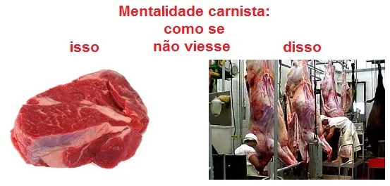 E mesmo onde não há essa distinção de vocabulário, existe o costume de desassociar a carne do animal morto, assim como não vincular o leite a fazendas industriais, roubos de bezerros e vacas com mastite. Tanto que, quando come carne ou consome outro produto vindo de animais que serão mortos em abatedouros, ninguém lembra de como é negativo o gado ser tratado “como gado” e o matadouro ser tão cheio de sangue nas paredes e chão.