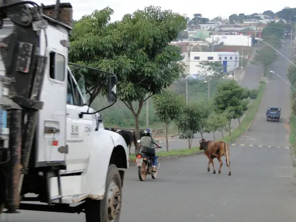 A grande quantidade de animais soltos pelas vias públicas de Passos (MG) continua preocupando a população. Um comerciante da avenida Juca Stockler, entre o Jardim Itália e Recanto da Teka, na região do bairro Jardim Aclimação disse que viu um bando de vacas pastando nos terrenos baldios, próximos a um posto de combustível. Os animais foram flagrados atravessando a avenida e colocando em risco os motoristas e pedestres e suas próprias vidas. “Pode vir aqui todos os dias por volta de 7h que elas estão aqui. O perigo de acidente nas duas pistas é iminente, porque no horário o fluxo de veículos é intenso. A prefeitura tem de fiscalizar isso e notificar os tutores de chácaras e sítios na periferia da cidade que os soltam nas ruas, inclusive em outros bairros, como Jardim Vila Rica, Serra das Brisas, Casarão, Eldorado, entre outros”, sugere um comerciante.