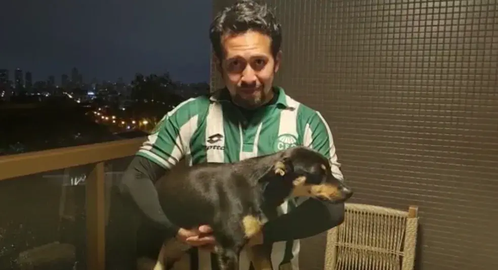 Um torcedor do Coritiba encontrou o cachorro que entrou no gramado do Couto Pereira, durante o primeiro tempo da partida contra o Ceará, na última quarta-feira (28/09), em Curitiba.