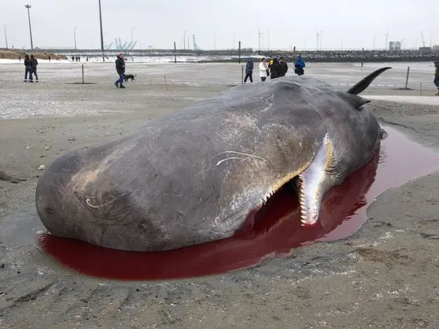 A baleia encalhou perto de Zeebrugge, próximo aos resorts de Knokke-Heist, e sua morte foi anunciada por especialistas no começo da tarde, depois de ter passado horas de dor, ferida na praia, de acordo com Jan Haelters, do Instituto.
