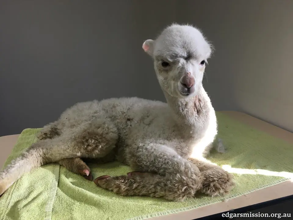 Um filhote de alpaca está sendo auxiliado por um grupo de ativistas para que possa voltar a andar. Aos dois meses, ele está quase alcançando o peso normal de uma alpaca recém-nascida, que é de entre seis e nove quilos em média.
