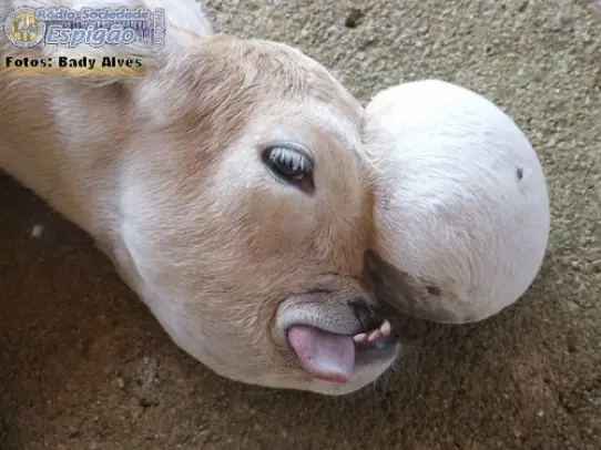 Um bezerro nasceu com uma enorme bola na testa, na linha Bandarra, a 5 km de Espigão D’Oeste (RO), na última sexta-feira (2), por deformação genética.