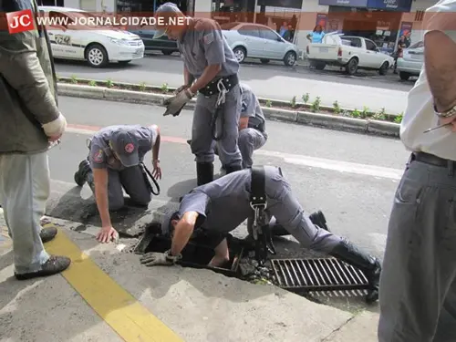 Os bombeiros foram acionados, mas como a grade estava presa ao asfalto, não puderam resgatá-la. Hoje, quarta-feira, foi feita nova tentativa, também sem sucesso. Um dos bombeiros entrou na galeria e se arrastou por mais de 10 metros para tentar alcançá-la, mas não a avistou.