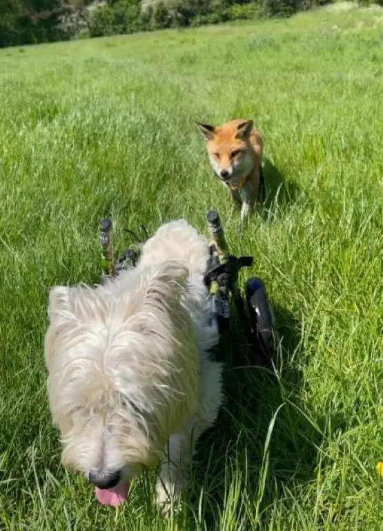 Depois de receberem alta, os dois animais passaram a viver com Ana em sua casa, que também resgatou outro cachorrinho chamado Croqueta. Juntos, os três adoram passear e em um de seus passeios, Ana percebeu que a raposinha estava acompanhando o barulho da cadeira de rodas de Jack para não se perder.