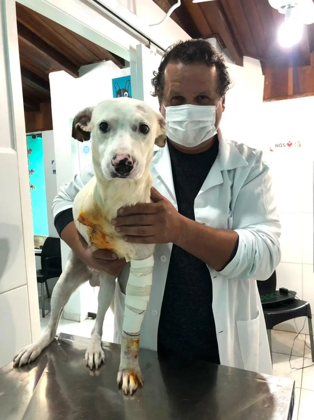 “É uma pena que tivemos que amputar, mas ele não tinha uma circulação adequada e tentamos de tudo para melhorar isso, mas não deu certo. Por sorte, a amputação foi um sucesso e ele está muito bem e se recuperando cada dia mais”, contou ao G1 o médico veterinário Péricles Nóbrega Mendes.