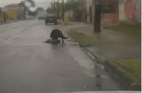 No vídeo, o cachorro maior lambe a cara da vítima, tentando reanimar. Após algum tempo, Leandro passou novamente pelo local e não viu sinal dos dois cachorros.