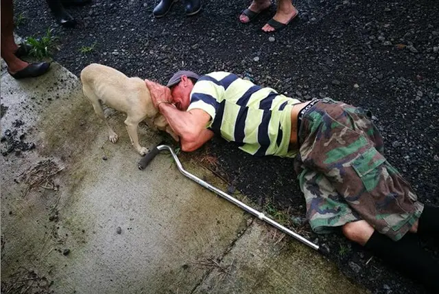 Primeiramente eles tentaram resgatar a cadela, mas ela fugiu. Os dois a seguiram para tentar entender o que estava acontecendo e foi quando encontraram um homem caído perto de uma calçada, ele estava passando mal.