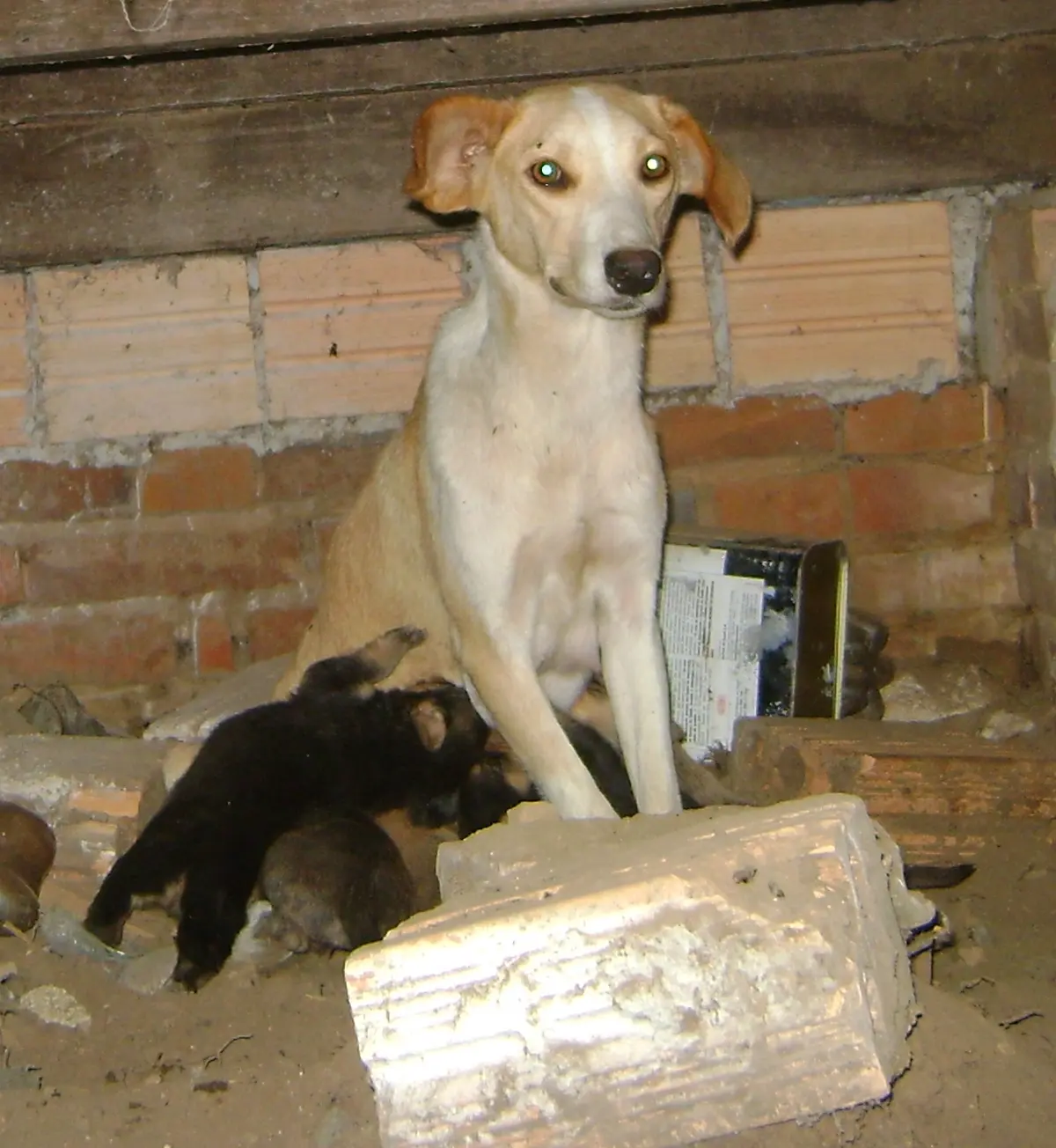 Está muito magra e seus filhotes estão quase sem leitinho. Se alguém de bom coração quiser pelo menos cuidar temporariamente dessas meninas, eu ajudo com a ração, só não tenho onde colocá-las.