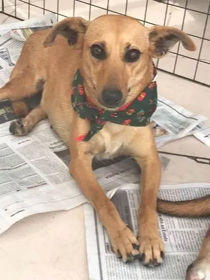 A cadela “Amora” foi resgata junto com outros cães em um terreno sem os cuidados necessários. Ela possui deficiência em uma das pernas traseiras e há denúncias de que o animal foi supostamente atropelado.