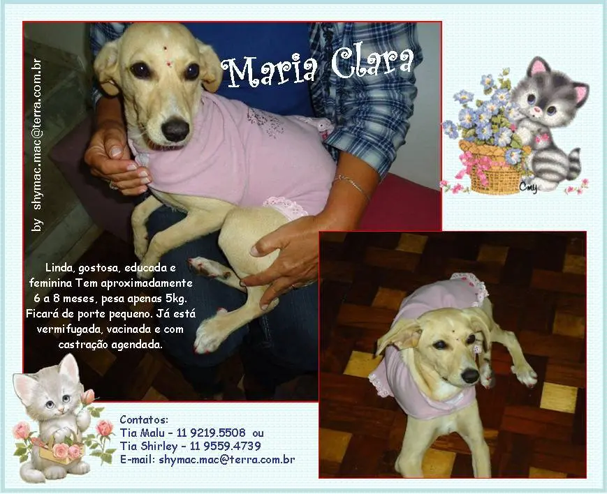 O fato é que não localizamos seu “tutor”, portanto essa mocinha precisa de um lar cheio de amor e doce como ela. É boazinha, educada, um anjinho. Tem aproximadamente 6 a 8 meses, pesa apenas 5 kg. Já foi vermifugada, vacinada e está com castração agendada.