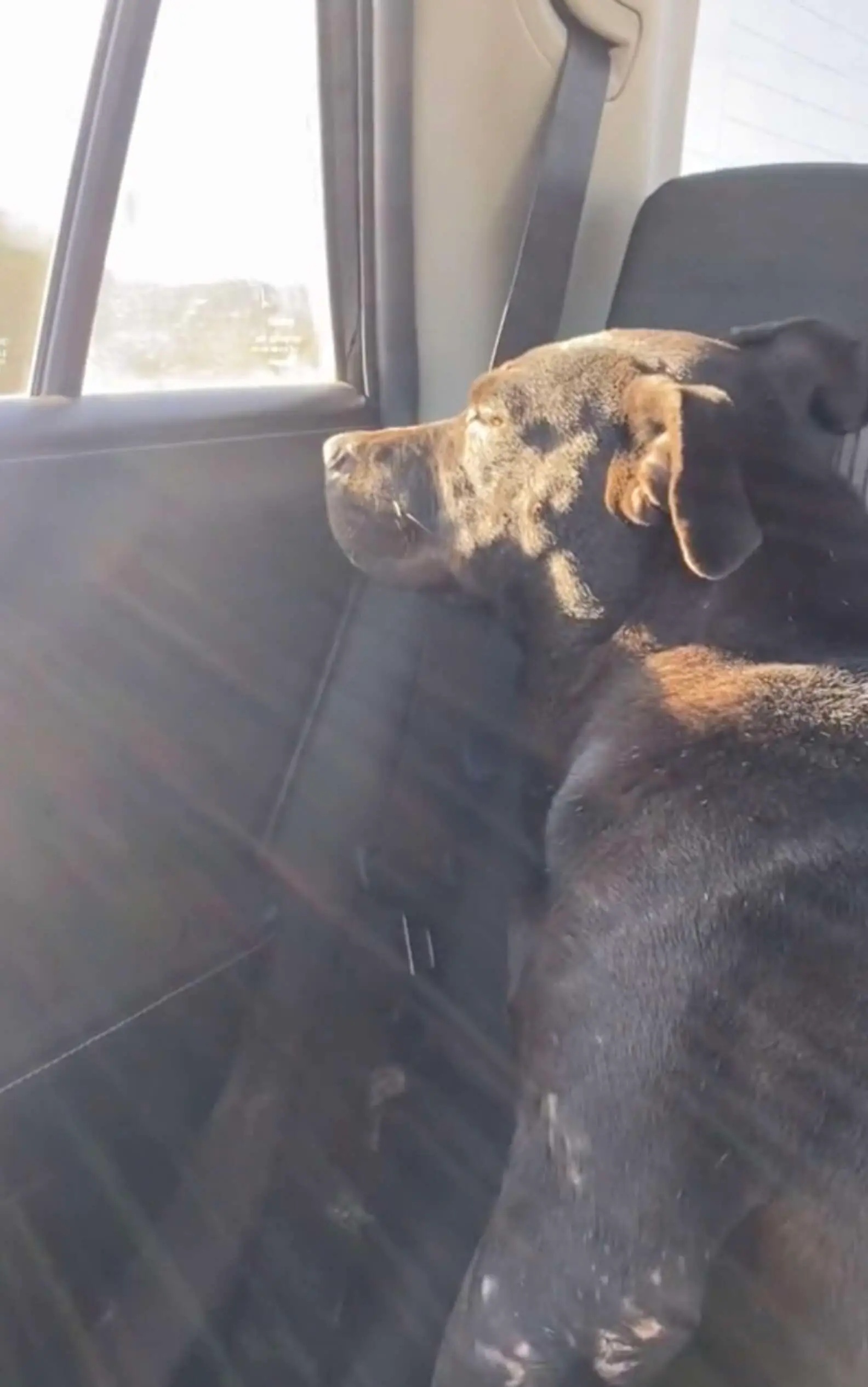 Elas sabiam que não podiam simplesmente virar as costas e ir embora. O casal atraiu a pit bull com o que sobrou da refeição e conseguiu colocá-la no banco de trás do carro. A cadela ficou nervosa e agitada. Jacks percebeu que o animal tinha muitas cicatrizes no corpo e que, provavelmente, estava assustada por ter sido vítima de maus-tratos e da maldade humana.