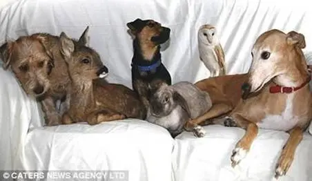 “Ela fez o mesmo com filhotes de raposa e de texugos: ela lambe os coelhos e os porcos da Guiné e ainda deixa os pássaros empoleirarem- se em seu nariz”.