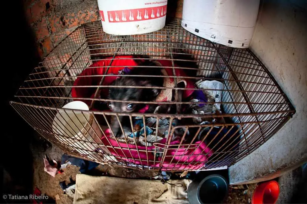 Estou divulgando a situação dessa cadelinha de pequeno porte que vive em péssimas condições dentro de uma gaiola em um quartinho escuro e quase sem nenhuma ventilação, onde passa o dia inteiro sozinha!