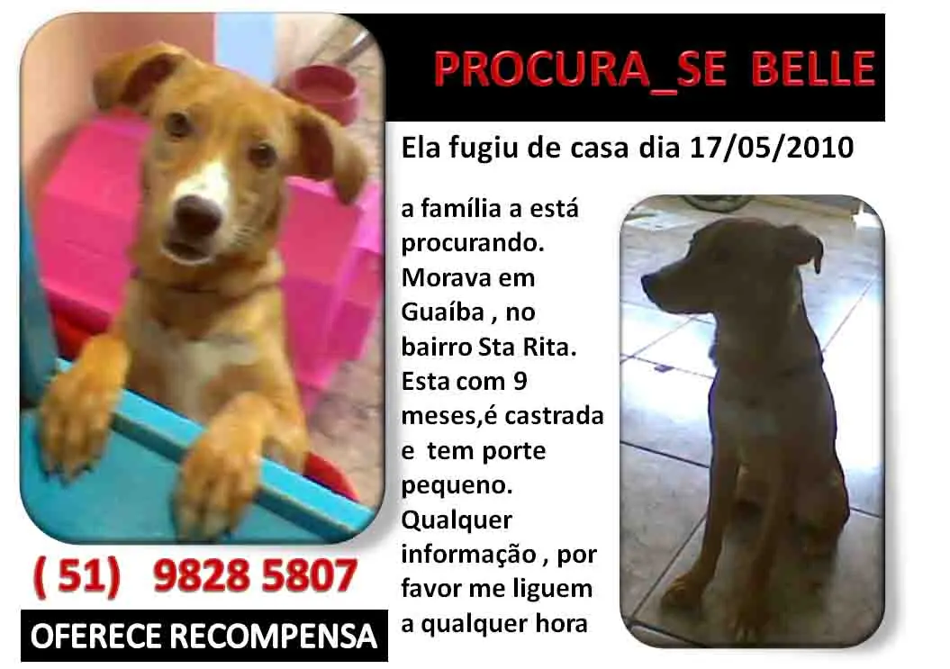 Preciso muito da ajuda de vocês. Doei a Belle em fevereiro e ela fugiu. Não sei como isso foi acontecer, pois a familia até construiu um portão auxiliar na garagem para maior segurança dela. Colocaram cartazes e estão procurando…
