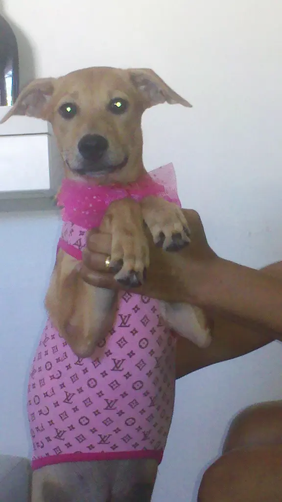 Peço que divulguem a adoção definitiva para Malú. Ficará de grande porte, na foto ela está com 6 meses. É castrada, está com as vacinas em dia, saúde perfeita.