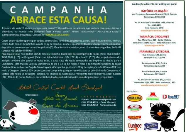 Todas as informações estão no cartaz, mas colocamos a disposição para mais informações e esclarecimentos através do e-mail [email protected] ou pelos telefones: (31) 99934233 ou 84542612.