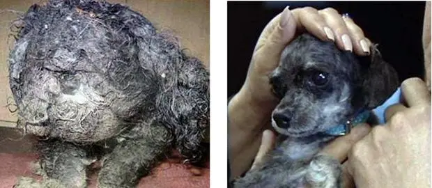 Um poodle abandonado, de cerca de dois anos, foi achado em 19 de outubro na sarjeta na cidade de LaPlace, na Louisiana, EUA, e levado a um abrigo em Houma.