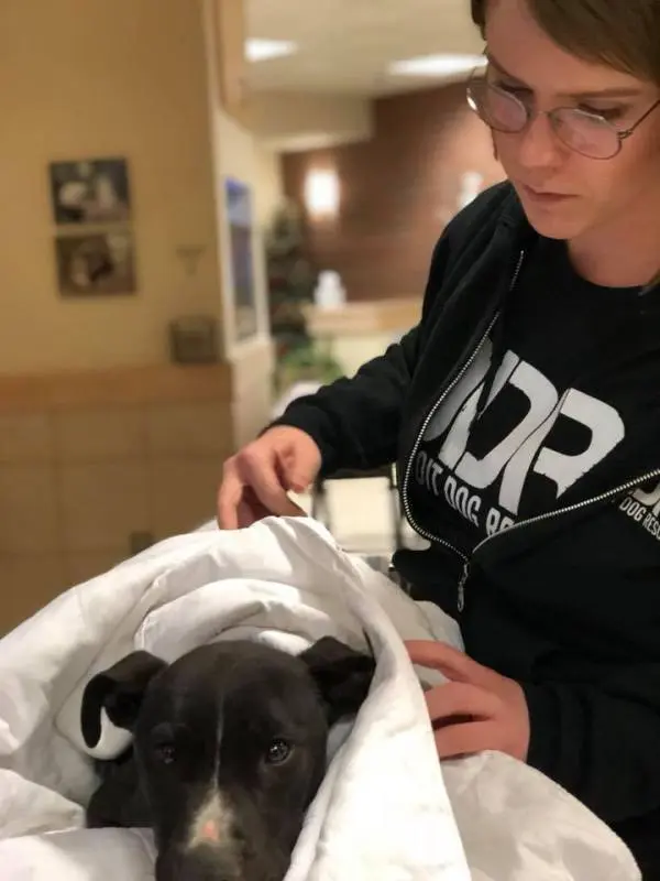 Ele estava com muito frio, acorrentado a um barril de metal e suas patas estavam congeladas no chão. Felizmente, ele foi resgatado por oficiais do departamento de Controle Animal de Detroit e encaminhado para um centro de resgate.
