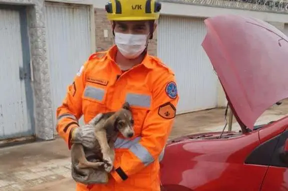 Um cachorrinho foi salvo por bombeiros após se esconder no motor de um carro e ficar preso. O episódio aconteceu em Montes Claros, no Norte de Minas, no último sábado (05).