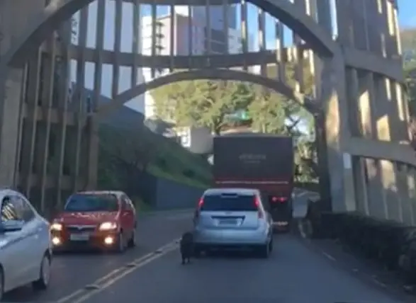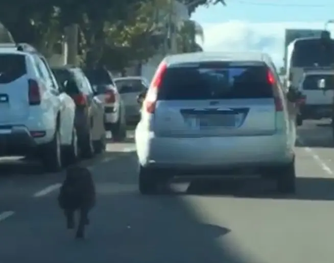 Um cachorro abandonado na rua perseguiu o veículo dirigido pela mulher que o abandonou em Bento Gonçalves, no Rio Grande do Sul. O crime ocorrido na segunda-feira (28) foi flagrado por uma guarnição do 3° Pelotão de Policiamento Ambiental da Brigada Militar.