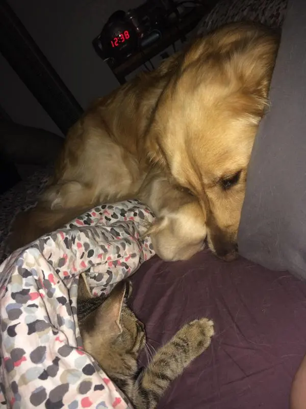 A gatinha recebeu o nome de Raina Lil Ray-Ray e agora está feliz em fazer parte da família. Depois de estar sozinho por algum tempo, Crosby mais uma vez tem alguém com quem dormir e brincar.