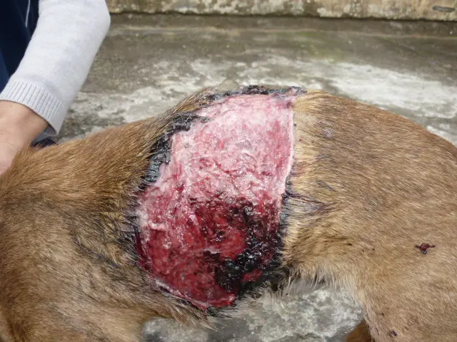 Eu alimento e cuido de um cãozinho idoso que “vive” na minha rua há alguns anos. Ele sumiu por 3 dias e depois voltou queimado, como a foto mostra.