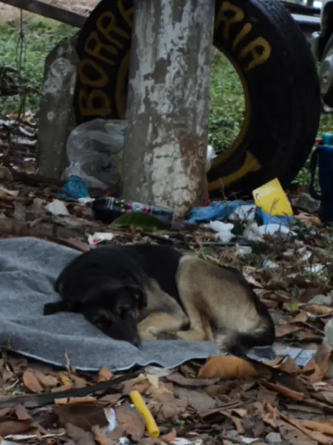 Achei que fosse de alguém ali da região, pois ficava sempre no mesmo lugar, mas hoje vi que não. Está jogado ali, sem comida, sem abrigo, com este frio absurdo que está fazendo e fez na madrugada.