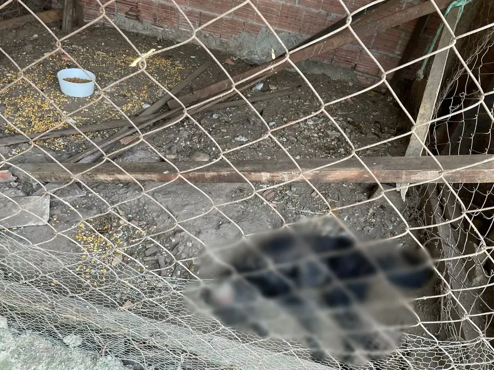 Eles foram até o outro endereço onde fica uma chácara. Lá encontraram o cão e mais 49 aves, todas em situação de maus-tratos. O cachorro morreu antes da chegada do atendimento veterinário.