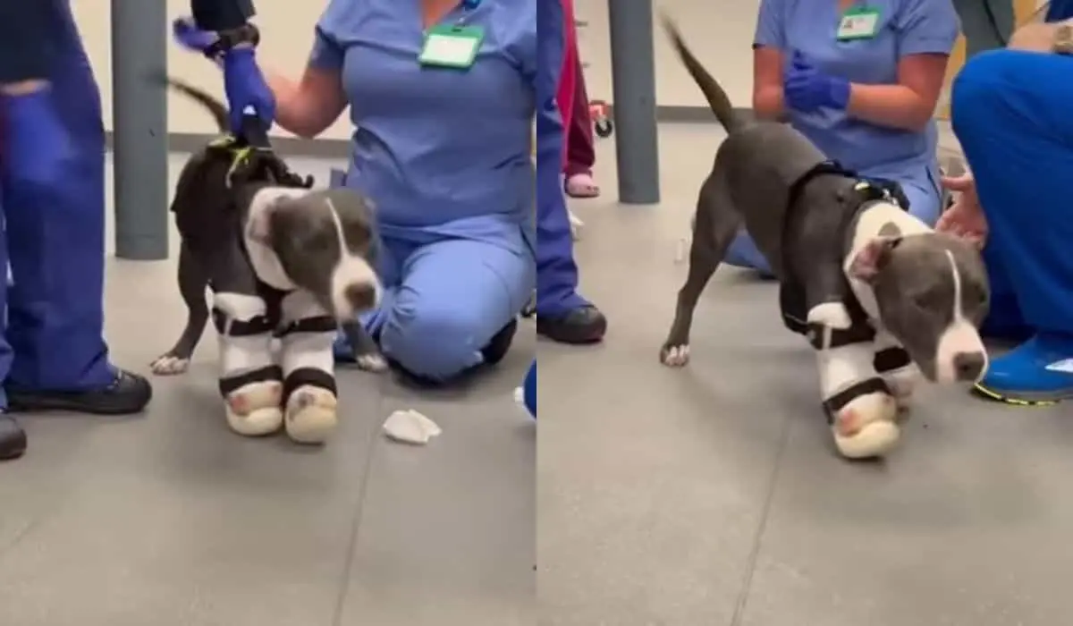 As imagens mostram os médicos colocando as próteses no cachorro, e mostra o adorável cão dando seus primeiros passos. A gravação acumulou mais de 300 mil curtidas, entre vídeo compartilhado no Instagram e TikTok.