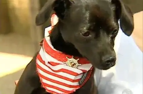 Com o distintivo da corporação, Uísque se tornou o primeiro cão-bombeiro de Cachoeirinha. O que foi motivo de orgulho para Ana Karolina, a menina que foi salva do incêndio.