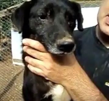 Volto a fazer um apelo para salvar este animalzinho. Imaginem um cão cego e surdo no meio de 70 cães, dentro de um abrigo (no caso, trata-se do “Abrigo da Raquel“).