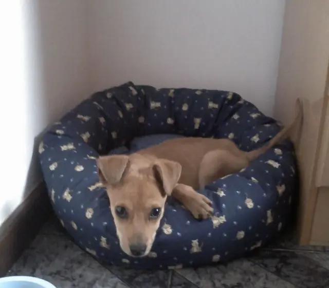 Este é Miojo. Ele foi resgatado em um barracão, na avenida Cupecê (São Paulo). Com ele, foram resgatados outros filhotes. Todos estavam com cinomose, ficaram internados por muito tempo, mas o Miojo está com sequelas da doença: fica tremendo a cabecinha e sua visão também já não é mais a mesma. O triste é que, por isso, ele não consegue encontrar uma família que o adote.