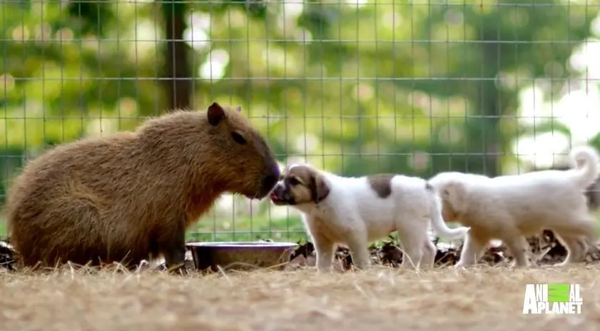 Este abrigo acolhe animais domésticos e selvagens necessitados e quem cuida de tudo é Janice. Ela contou ao Animal Planet que a capivara se torna mãe adotiva de todos os filhotes de cachorro que aparecem.