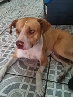 É lindo, de olhos verdes. Está no Pq, Edu Chaves, em SP. Temo o pior, já que as pessoas estão com medo dele dizendo que é perigoso por ser pit bull.
