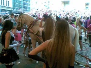 – interagi, inicialmente, com as três polícias militares que presenciaram a ação, pedido providências imediatas devido ao cansaço do cavalo. Rapidamente as pessoas desceram do carro alegórico evitando criar um imbróglio, porém, as polícias me falaram que não é da competência/autoridade deles de impedirem a ação.