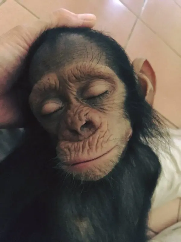 Os efeitos das experiências traumáticas do chimpanzé não desapareceram completamente – ele ainda mostra sinais de estresse. Porém, tem se recuperado lentamente e aprendido que nada doloroso ocorrerá nas mãos de seus novos cuidadores.