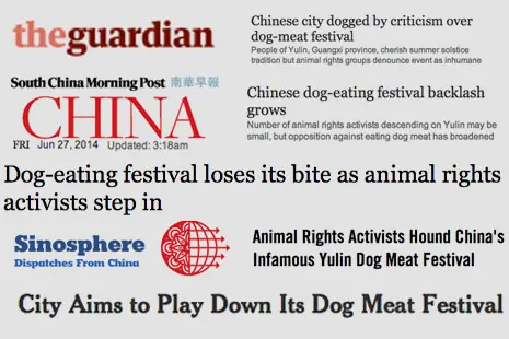 E o peso da opinião pública está claramente tendo efeito. Mais de 100 veículos de comunicação na China e internacionais divulgaram o Festival de Carne de Cão de Yulin em 2014, acrescentando muitas críticas ao verniz de respeitabilidade e normalidade que mascaram a crueldade do comércio.