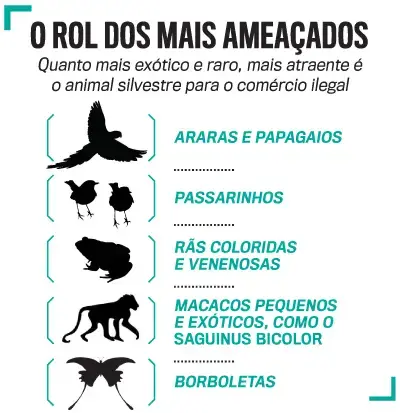 É triste saber da participação de autoridades, que deveriam zelar contra o sequestro e foram coniventes. A Operação Defaunação, da Polícia Federal, deflagrada em março do ano passado, e que ainda agora ecoa, identificou a participação de um bombeiro militar, de servidores do Instituto Estadual do Ambiente, do Rio de Janeiro, e do Comando de Policiamento Ambiental, que falsificava a documentação de animais ameaçados de extinção. A investigação prossegue. Outros animais despontam no melancólico rol, como rãs coloridas e macacos (veja no quadro). Muitos são transportados ainda filhotes, abarrotados dentro de malas comuns de viagem — sem ter como respirar, a maioria morre no caminho.