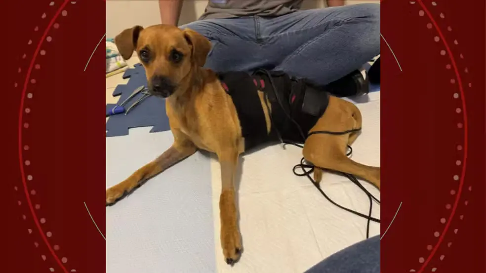 O caso aconteceu no dia 9 de setembro. O Caramelo, como foi nomeado o cachorrinho, foi levado a uma clínica veterinária e passou por duas cirurgias. Atualmente, ele não corre mais risco de morte, mas continua internado e não deve conseguir voltar a andar.