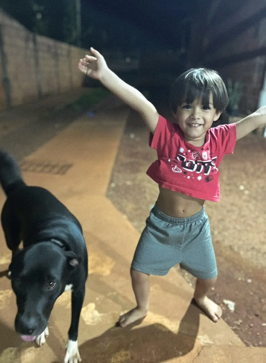 João André, de 3 anos, com um de seus cães. Foto: Arquivo Pessoal