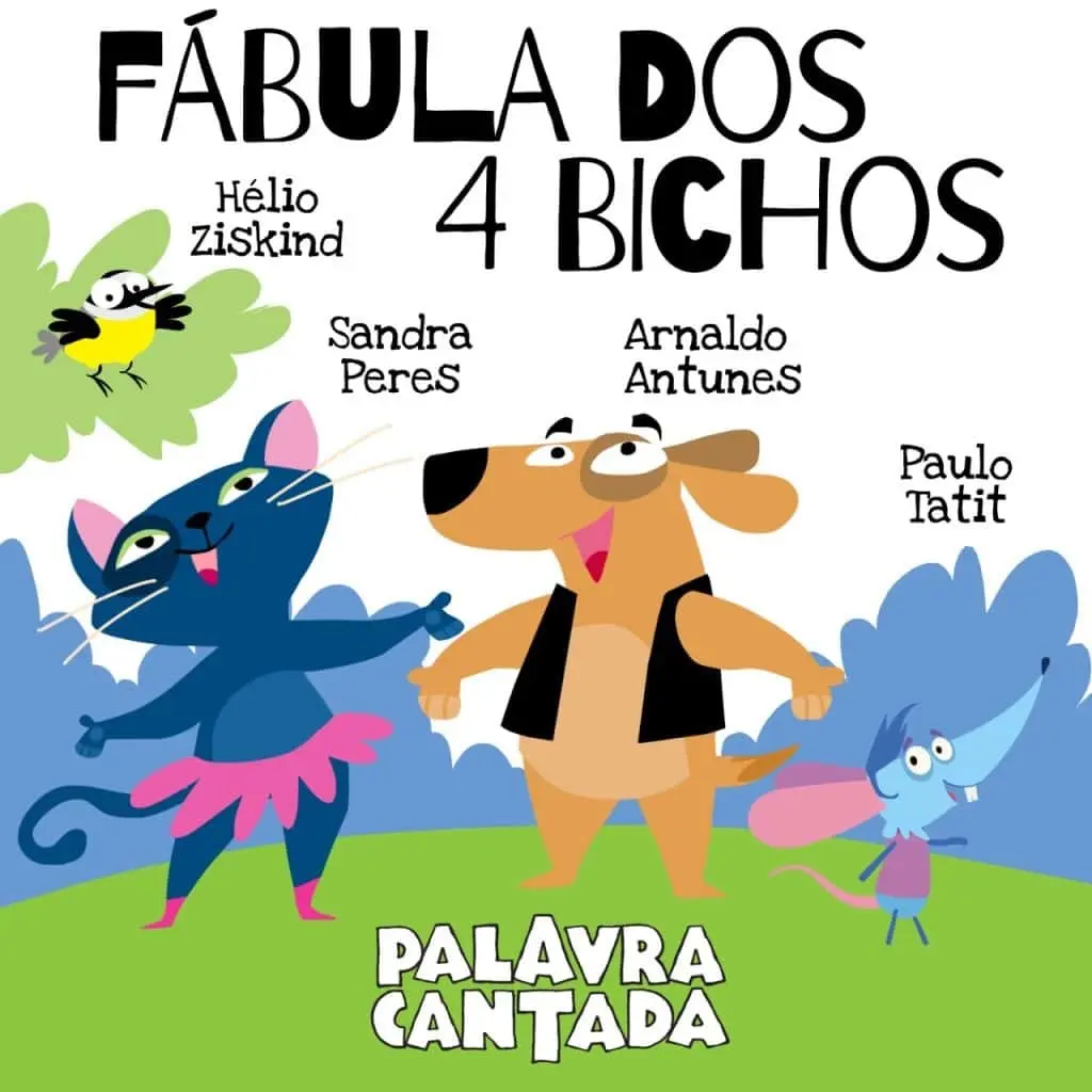 A dupla musical Palavra Cantada lançou nesta terça-feira (12) em que se comemora o Dia das Crianças a canção Fábula dos Quatro Bichos, que trata de uma divertida história vivida por um cachorro, uma gata, um rato e um bem-te-vi que vivem em ambiente urbano.