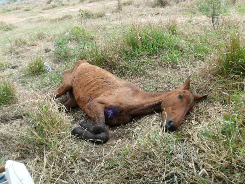 Essa égua estava abandonada há mais ou menos 3 dias com ferimentos pelo corpo, com fome sede calor à mercê da sorte. Fomos chamados chegando ao local e deparando com tal situação a sensação é de nojo de alguns seres humanos.