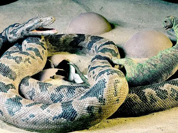 Um estudo realizado por cientistas indianos, canadenses e americanos descobriu que cobras que viveram na Índia há 67 milhões de anos se alimentavam de dinossauros recém-nascidos.