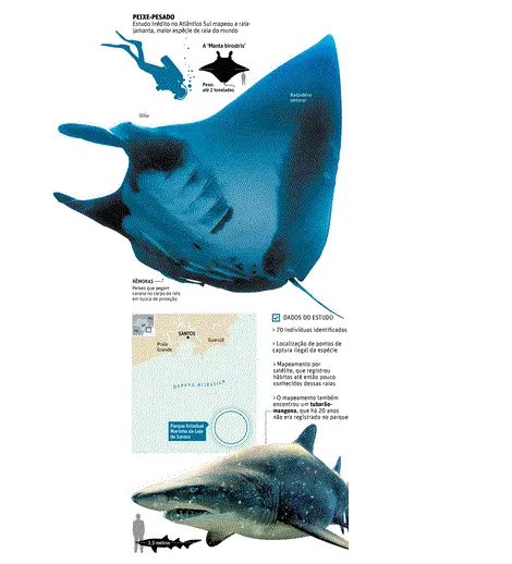 Agora, pesquisadores do Projeto Mantas do Brasil, com patrocínio da Petrobras, fizeram o primeiro mapeamento por satélite no Atlântico Sul dessa que é a maior espécie de raia do planeta.