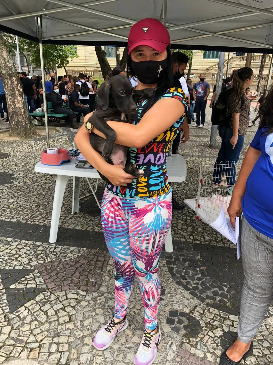 “Meu marido trabalha e eu fico em casa sozinha a maior parte do tempo. Vi nas redes sociais que hoje haveria um evento de adoção e me apaixonei por este aqui. Ele vai ser meu companheiro”, derreteu-se a mais nova tutora, que levou pra casa um filhotinho de cachorro sem raça definida.