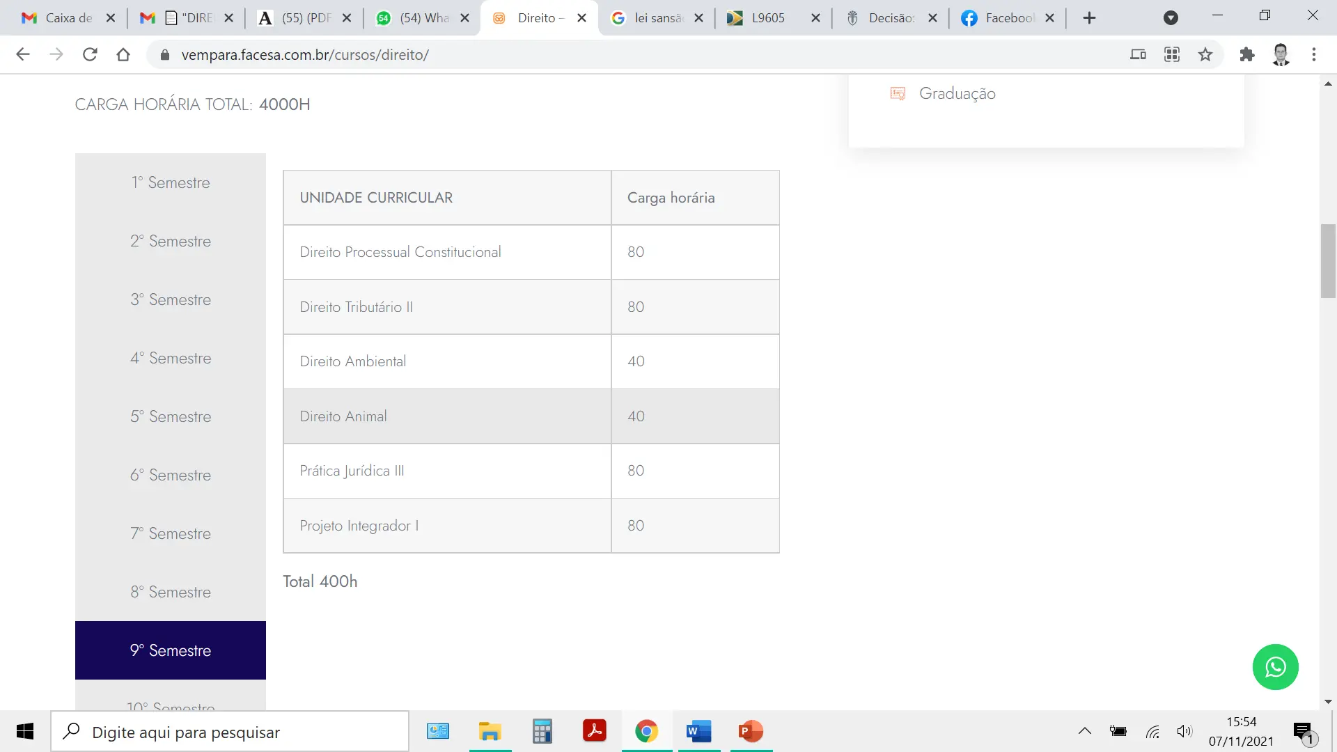 Nesse contexto, em 2021, ocorre mais um importe avanço na matéria no Brasil: o funcionamento do primeiro curso de Direito que possui Direito Animal como disciplina obrigatória na matriz curricular. Trata-se do curso de Direito da Faculdade Sena Aires (FACESA), que inaugurou as atividades acadêmicas no primeiro semestre de 2021 e possui, no nono semestre, a disciplina Direito Animal com 40 horas de carga horária: