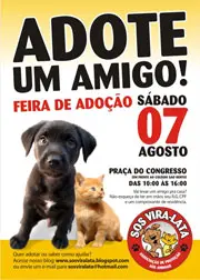 Neste sábado, no centro de Criciúma-SC, véspera do dia dos pais, será realizada mais uma Feira de Adoção de animais adultos e filhotes, promovida pela ONG SOS Vira- Lata. A ação acontece das 10h às 16h na Praça do Congresso, em frente ao colégio São Bento, em Criciúma.