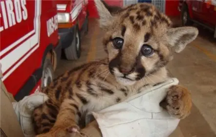 Bombeiros de Planaltina, em Goiás, resgataram um filhote de suçuarana, em uma fazenda a 40 quilômetros da cidade.