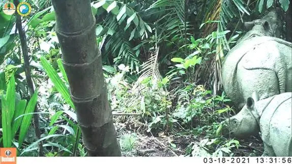 Os filhotes, uma fêmea e um macho, foram vistos em diferentes ocasiões em março por câmeras com sensores de movimento no Parque Nacional Ujung Kulon, na ponta oeste da Ilha de Java, na Indonésia, o último habitat do rinoceronte-de-java (Rhinoceros sondaicus) na Terra.